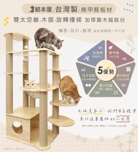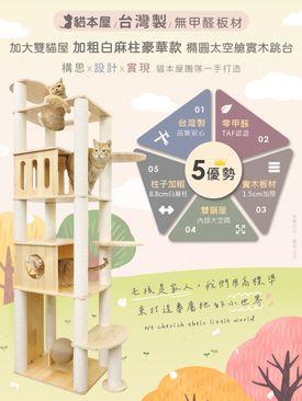 貓本屋 台灣製 豪華款 橢圓太空艙/加大雙貓屋 加粗白麻柱 實木貓跳台(附劍麻抓
