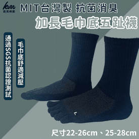 【凱美棉業】 MIT台灣製無痕消臭機能毛巾底五趾襪 3色 (22-30cm)
