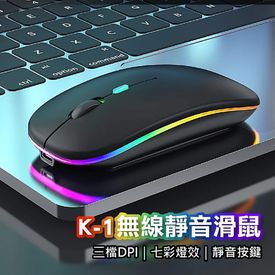 K-1 無線靜音滑鼠(三檔DPI 七彩燈效 按鍵靜音 USB充電 藍芽連線)