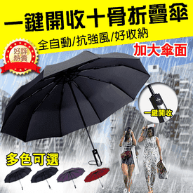 全自動特大號10骨黑膠摺疊雨傘 藏青/黑/酒紅/灰
