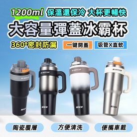 大容量陶瓷塗層冰霸杯1250ml 手搖飲 保溫 保冷 手把