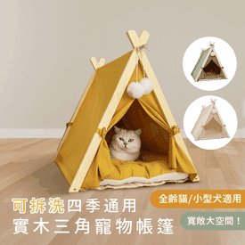 四季通用實木三角寵物帳篷睡窩 全齡貓/幼犬/小型犬適用 可拆洗