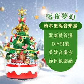 雪夜夢幻積木聖誕音樂盒 夜燈 氛圍燈
