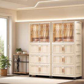 【Mr.box】68&78大面寬優雅摺疊磁吸雙開門收納櫃-附滑輪