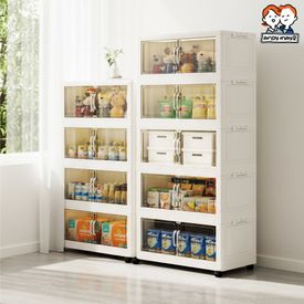 【慢慢家居】62面寬折疊式超大容量雙開門可疊加附輪五層收納櫃