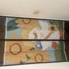 2.將魔術貼刺面整齊貼於門簾毛面上