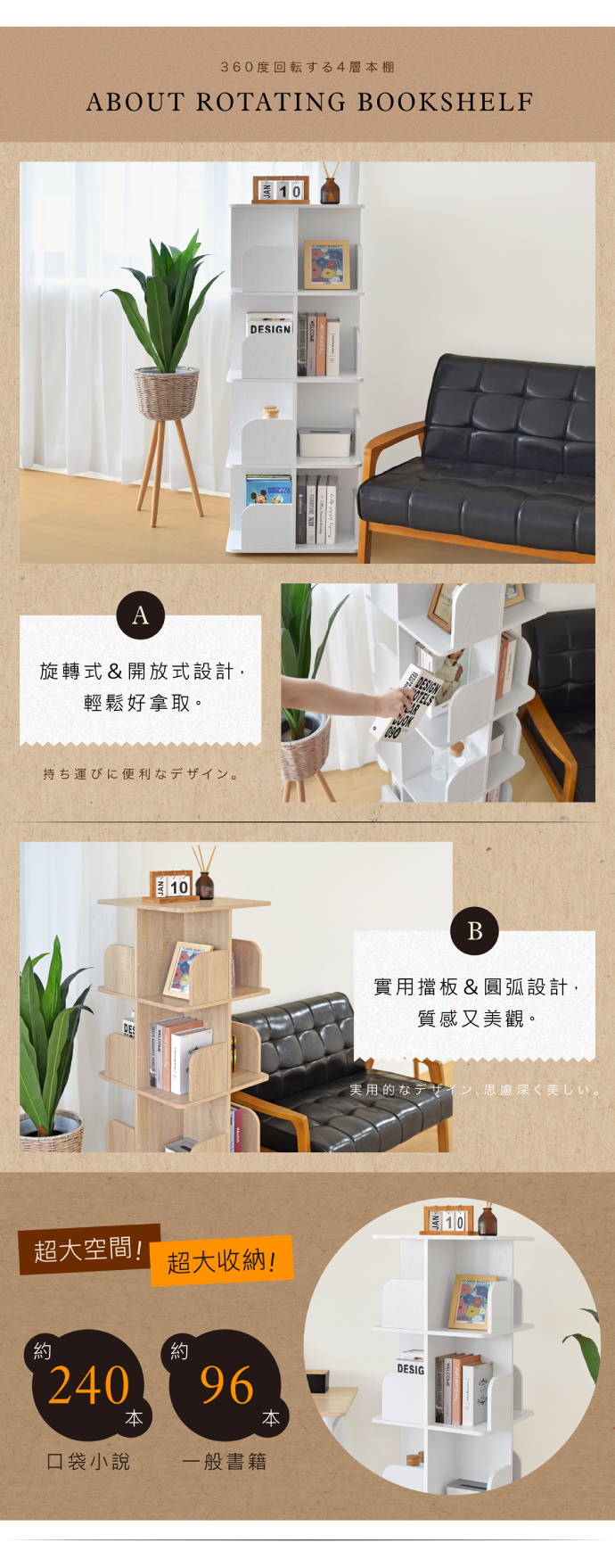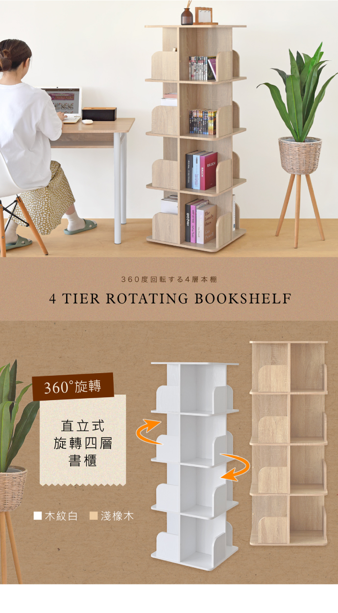 ◎商品名稱:《HOPMA》直立式360度旋轉四層書櫃 台灣製造 收納展示櫃 置物邊櫃