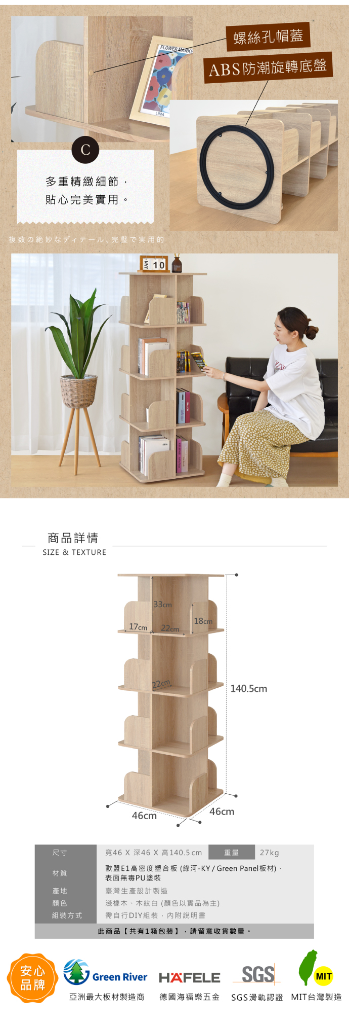 ◎尺寸:寬46X深46X高140.5 cm