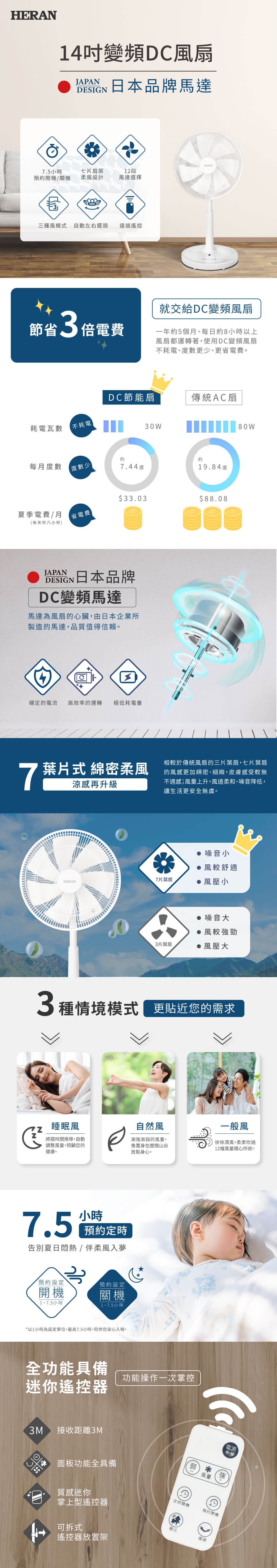 【公司貨】HERAN 禾聯 HDF-14CH750 14吋智能變頻DC風扇 7片