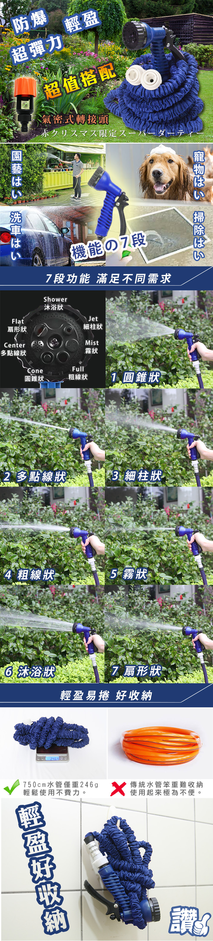 .7種噴灑狀 滿足您澆花、洗車、洗狗等各種需求!