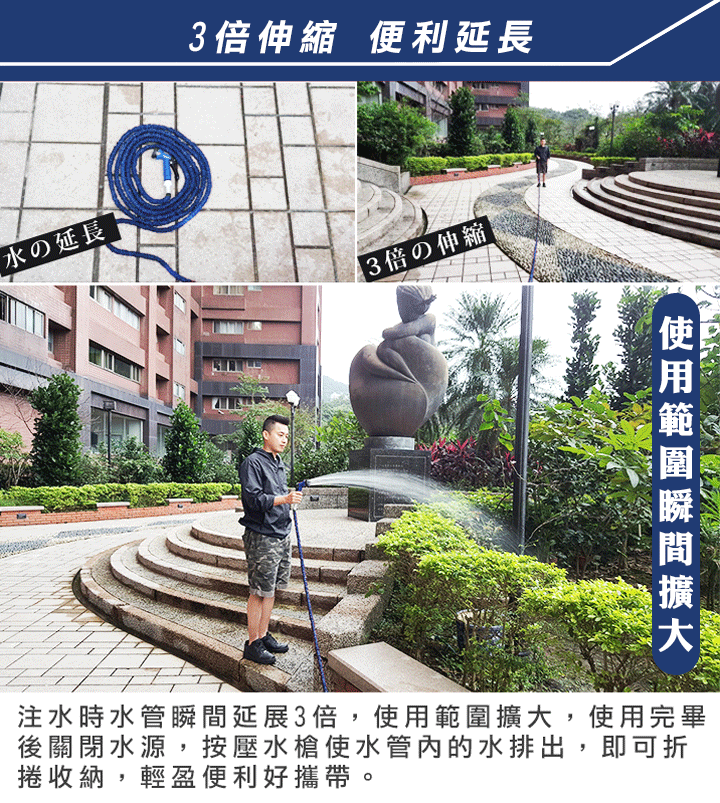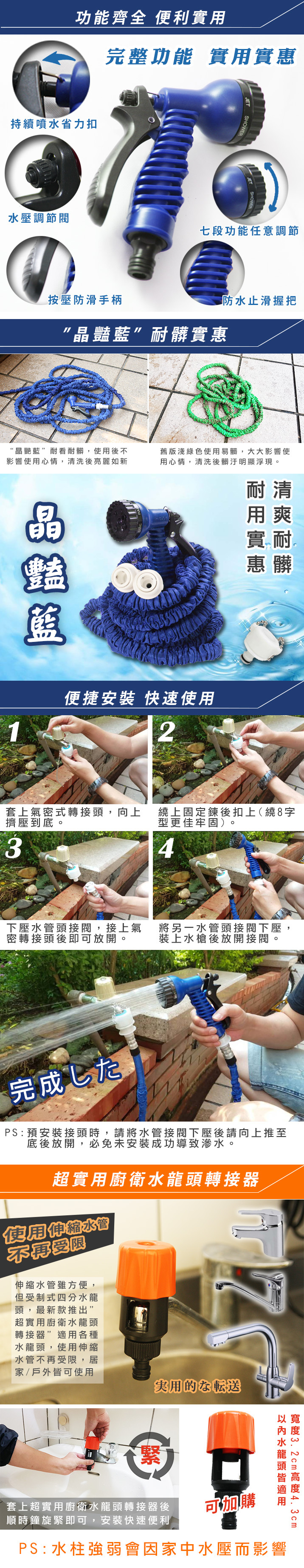 每組內容物:伸縮水管x1、7段式強力水槍x1、氣密式轉接頭x1