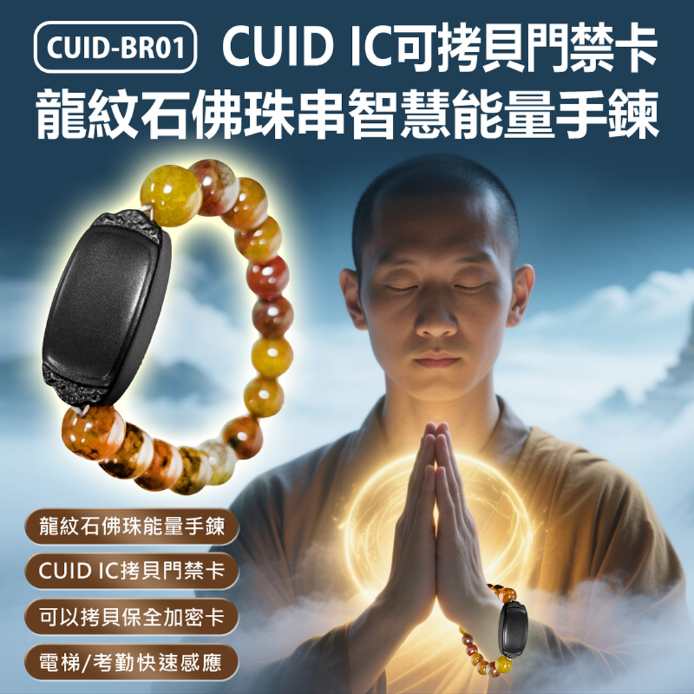 【商品名稱:CUID-BR01 CUID IC可拷貝門禁卡龍紋石佛珠串智慧能量手鍊】
