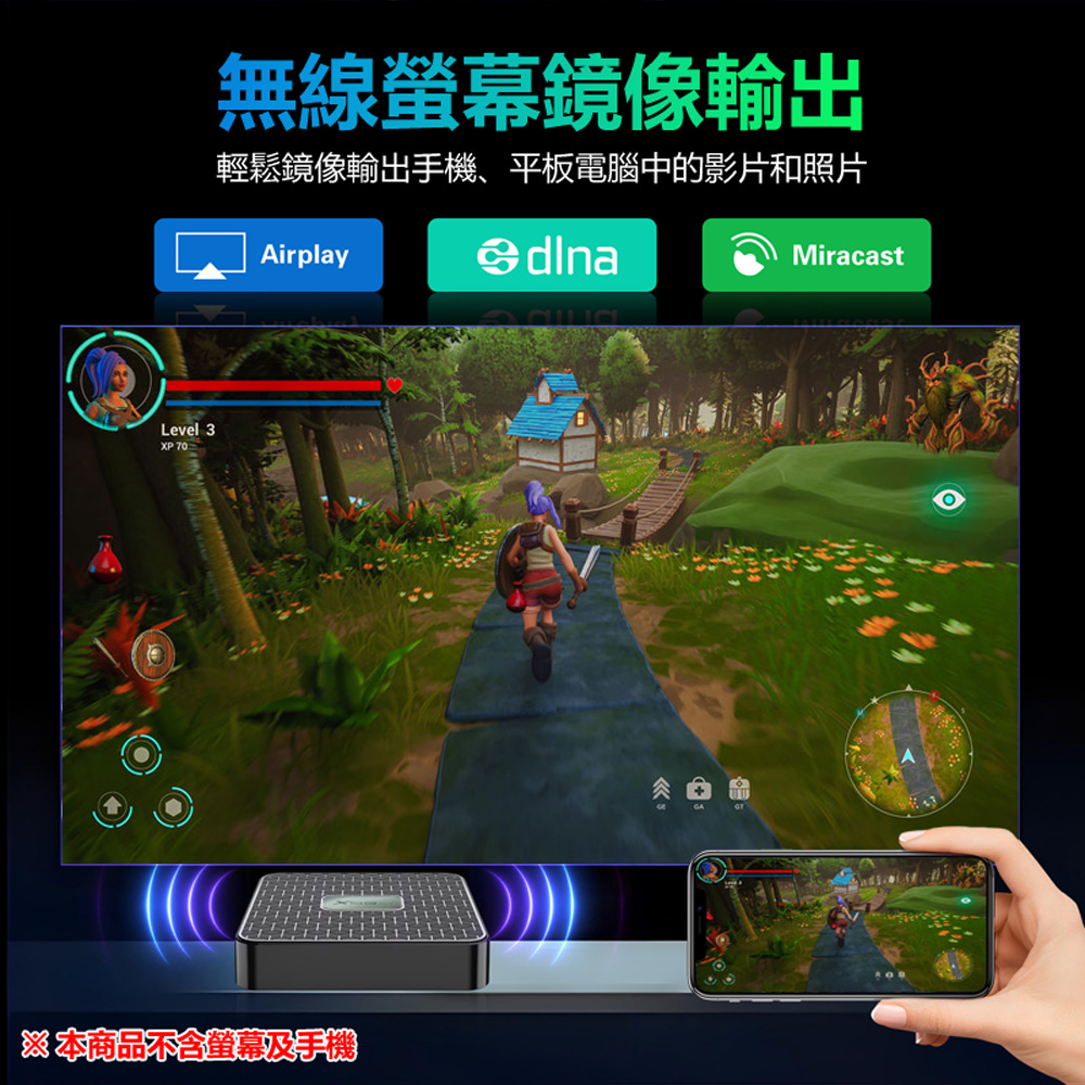 ★ 支援Airplay/Miracast/DLNA無線螢幕鏡像輸出手機、平板的影片和照片