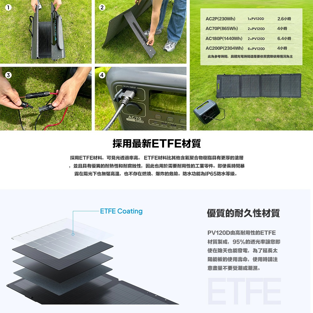使用時,只需展開PV100並連接,即可為便攜式電源或蓄電設備快速充電,即插即用。