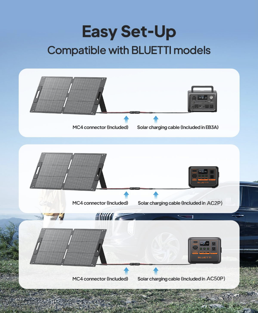 隨附 MC4 連接器線,可輕鬆連接市場上的許多便攜式電源。