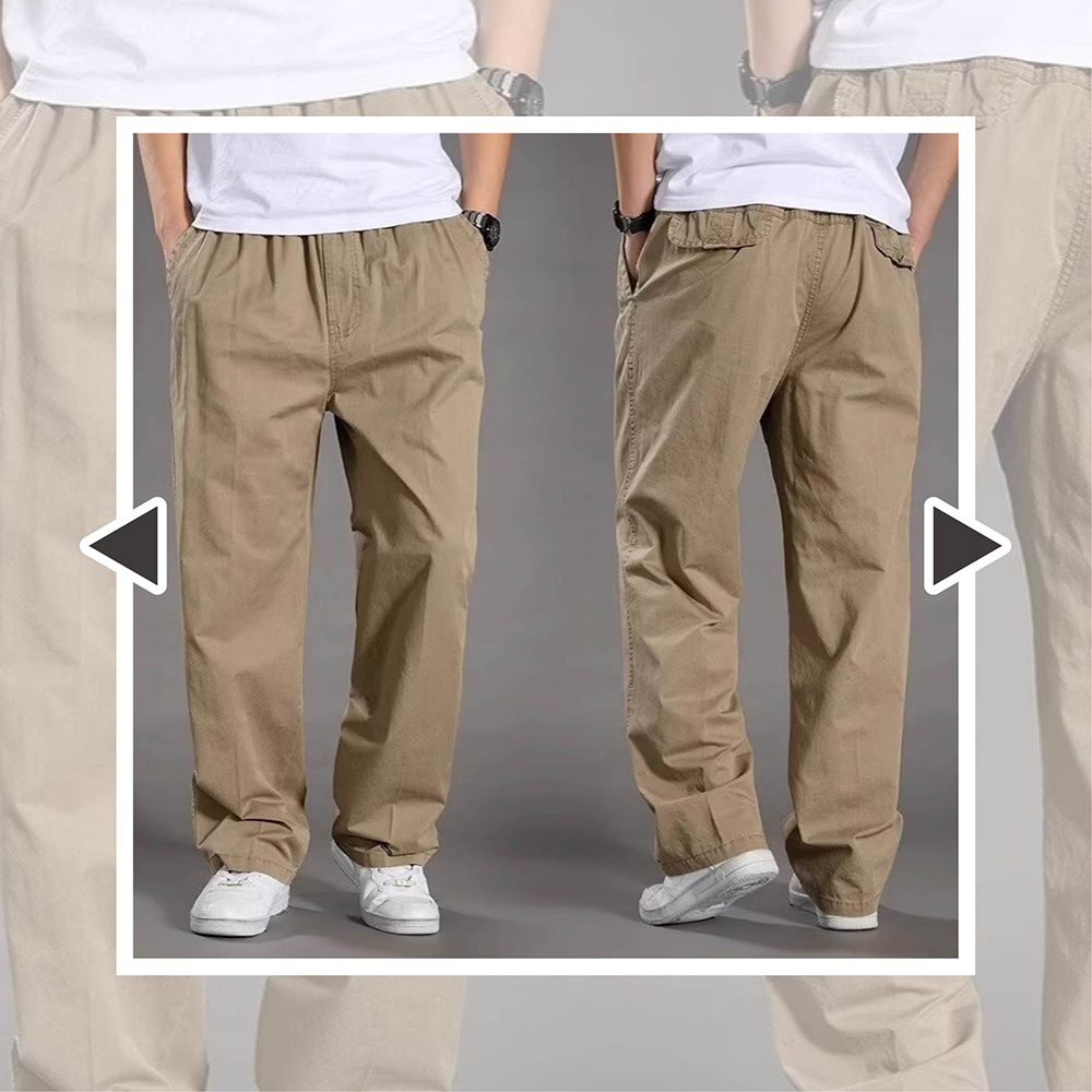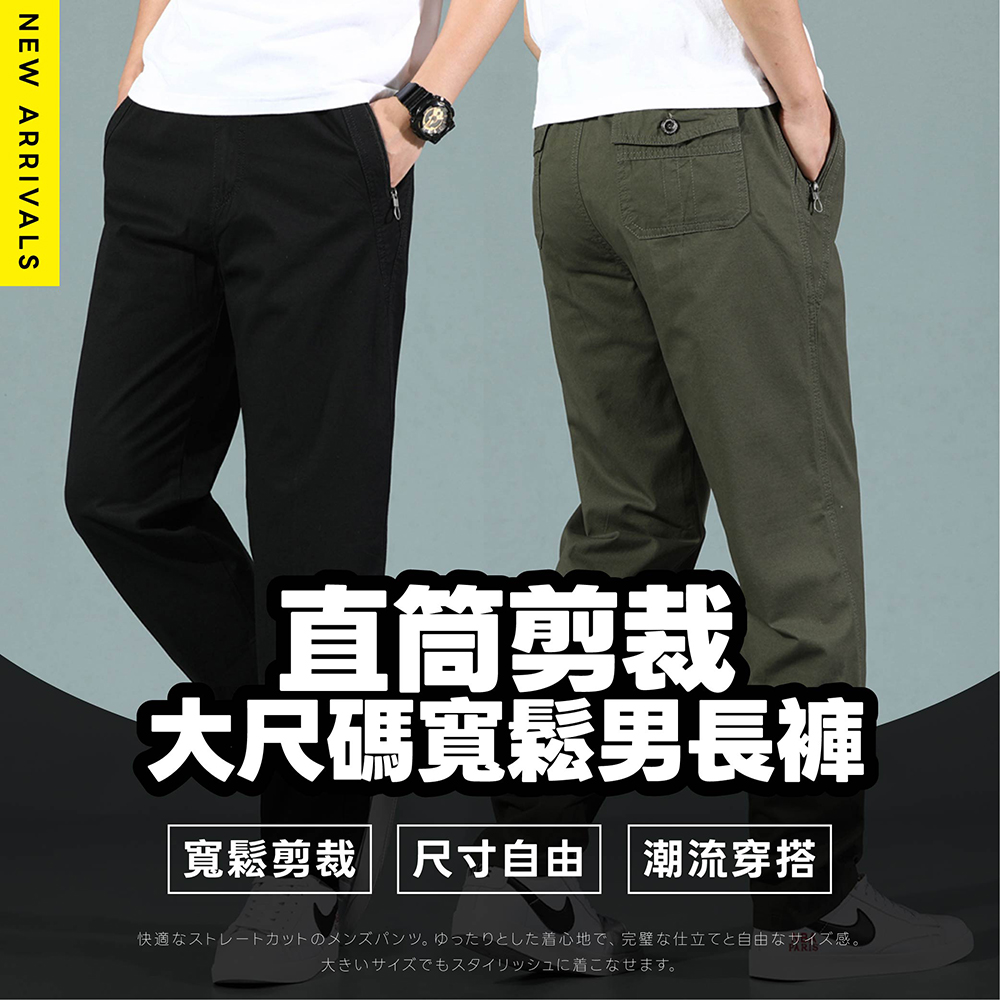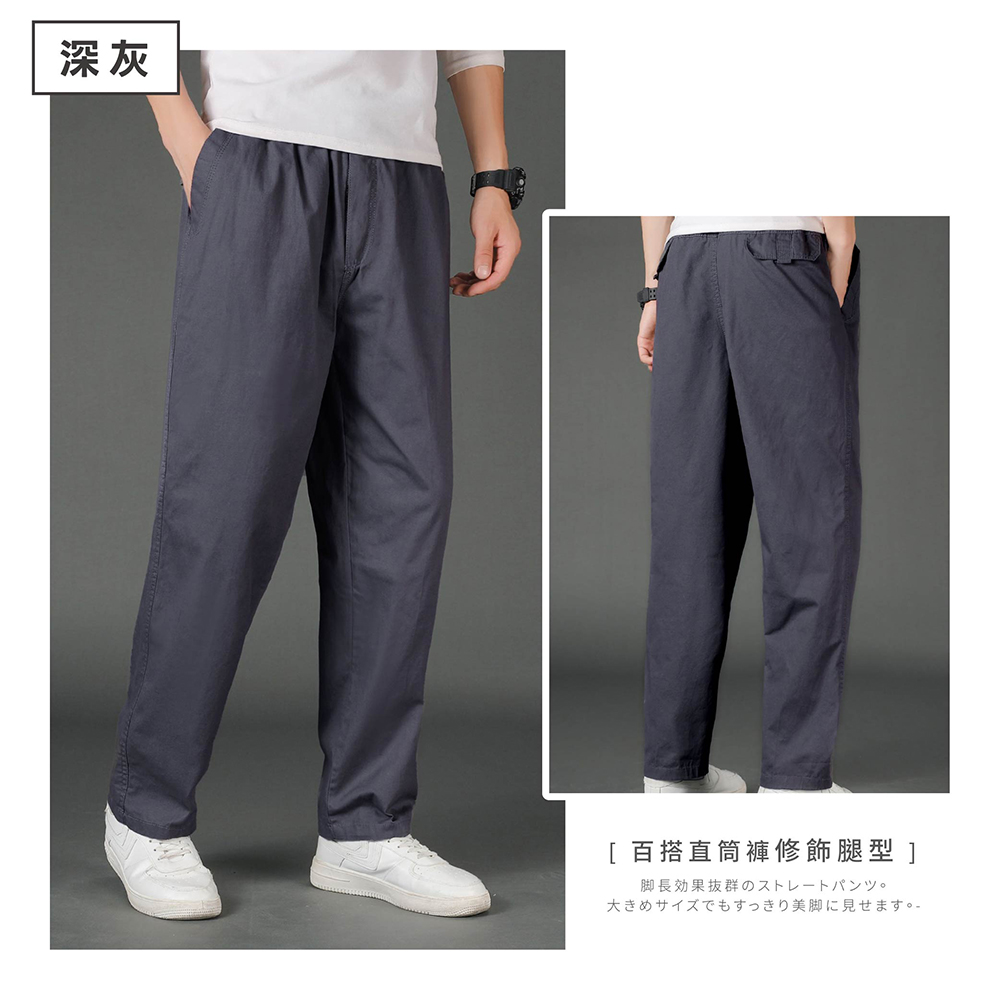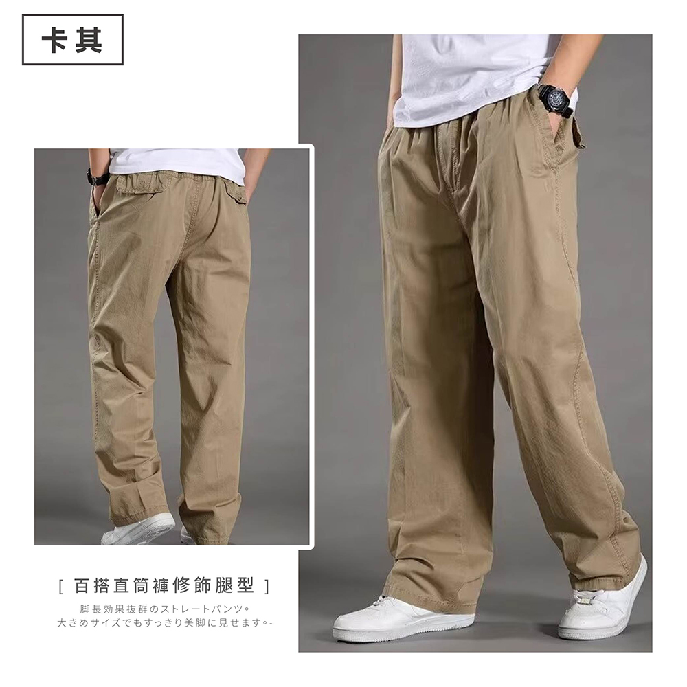 直筒剪裁大尺碼寬鬆男長褲-4色可選