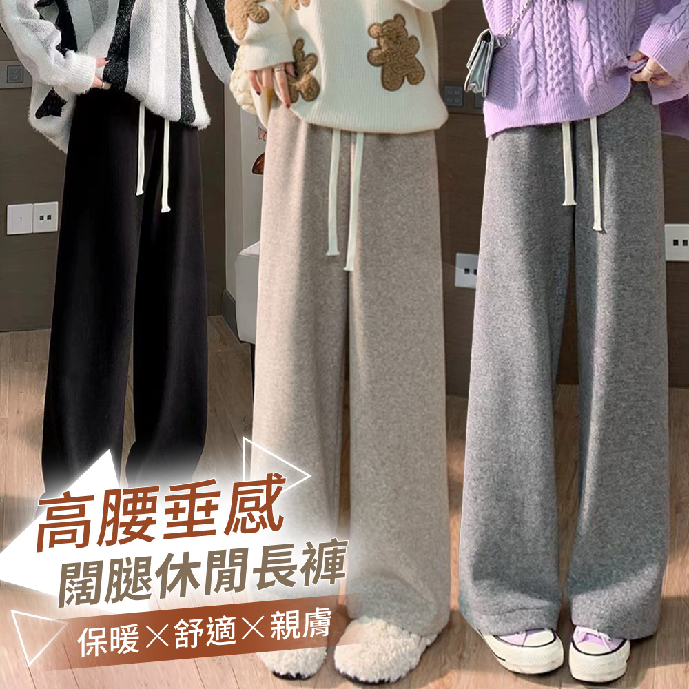 高腰垂感保暖女闊腿休閒長褲-3色可選