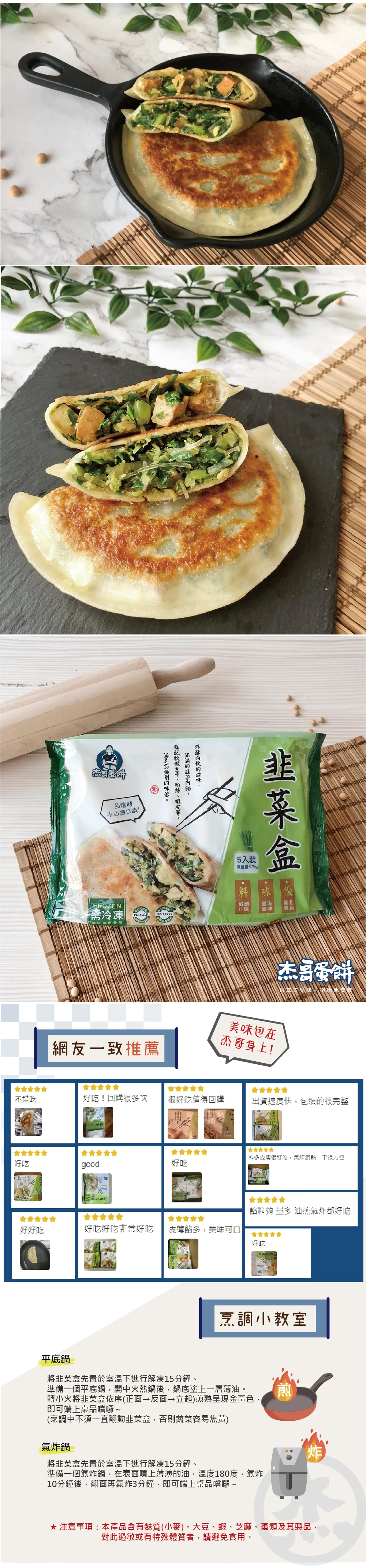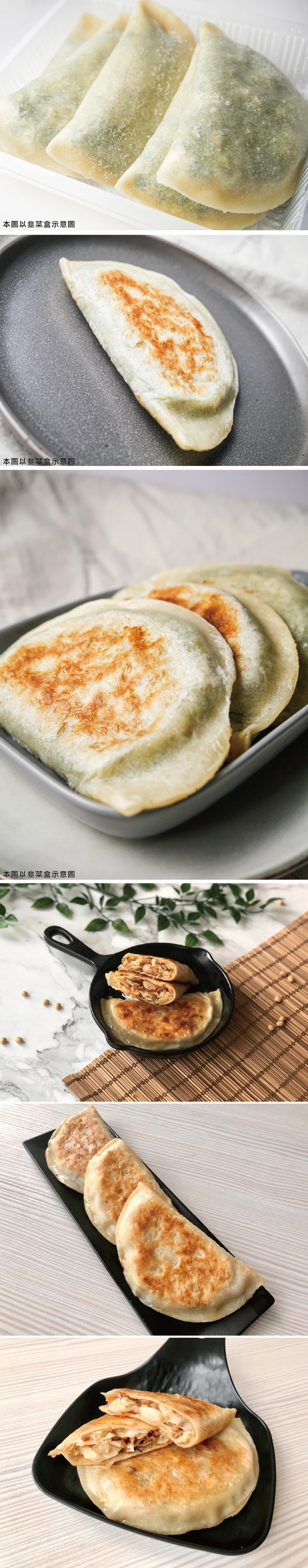 食用方法:建議前一晚先將韭菜盒放置於冷藏下進行解凍。(以保持最佳口感與風味)