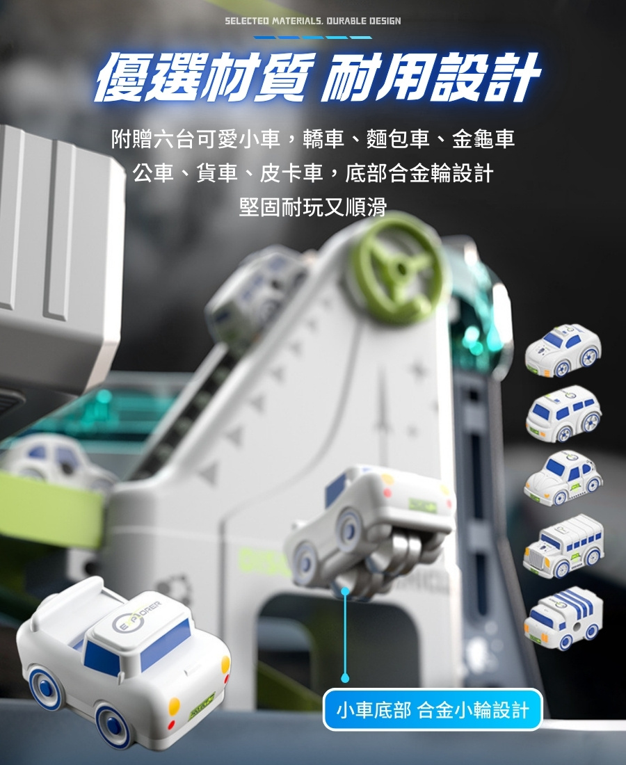【合金小車】 附贈6種小車、底部合金輪設計、耐玩堅固又順滑