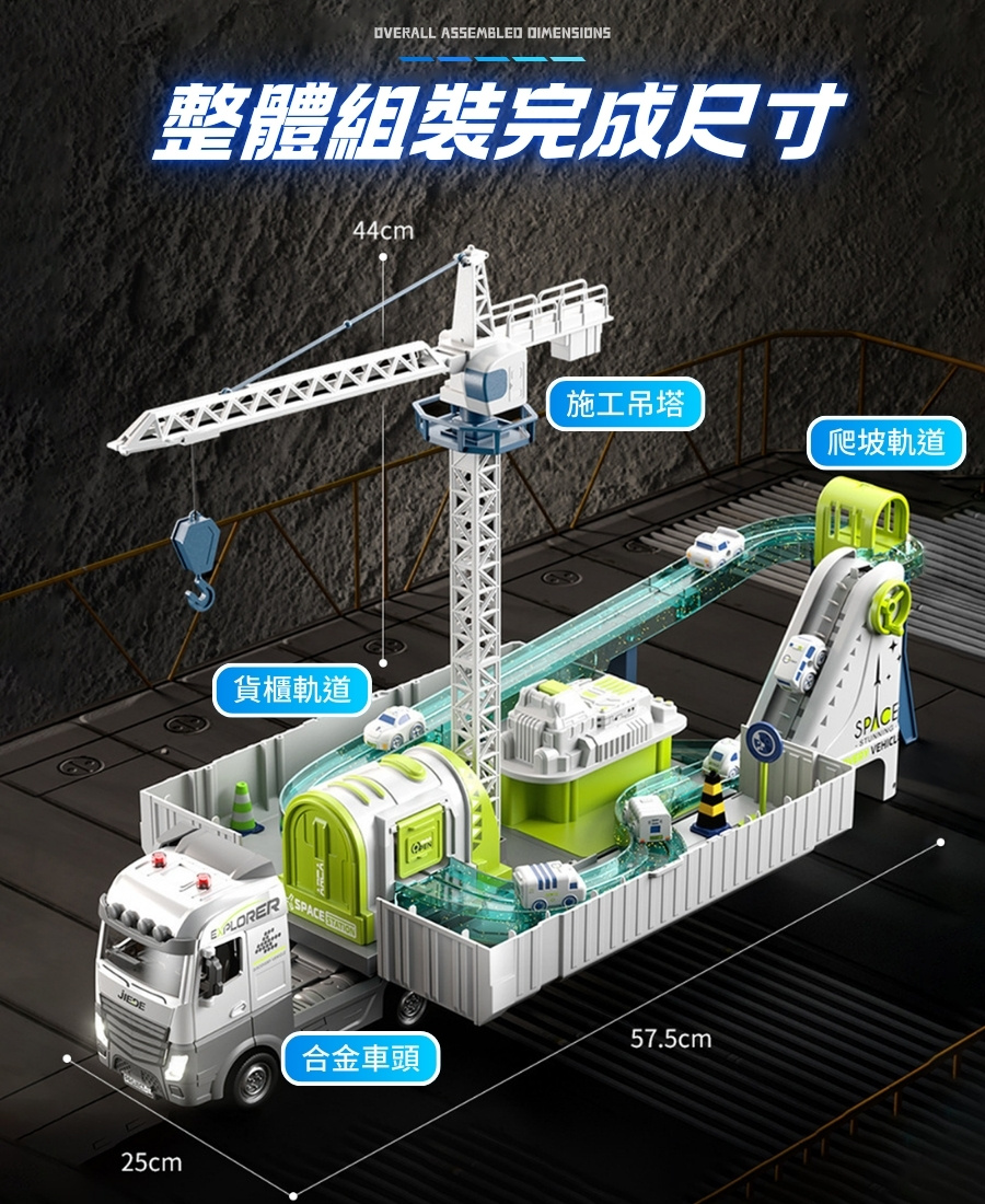 【可玩性高】 可拆卸貨櫃車、吊塔場景搭建、小車滑行跑道、按壓彈射軌道