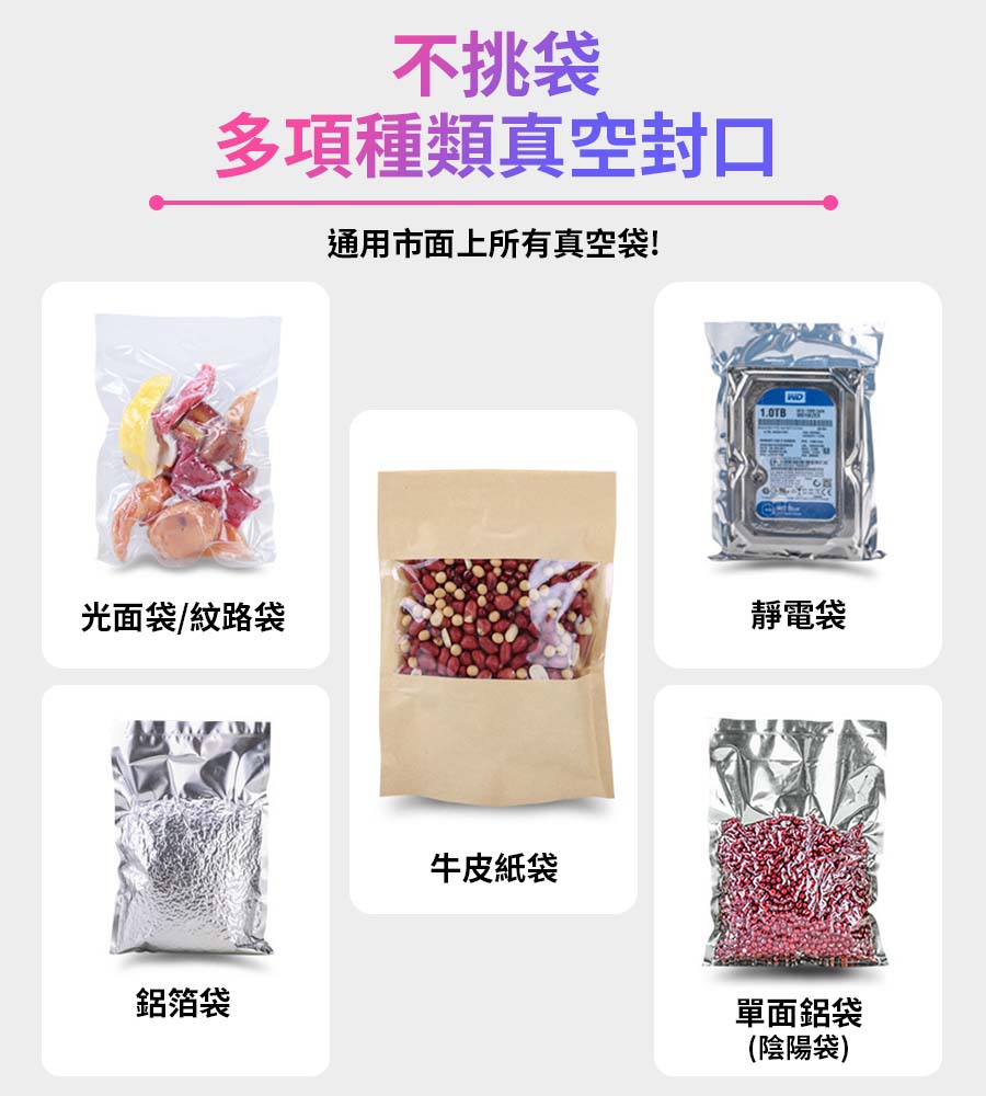完全不挑袋!!!所有真空包裝袋都適用唷
