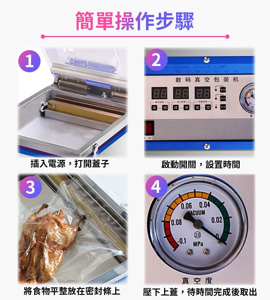 (4) 設定完畢後,只要將蓋子蓋上,機台就會自動進行抽真空、封口動作。
