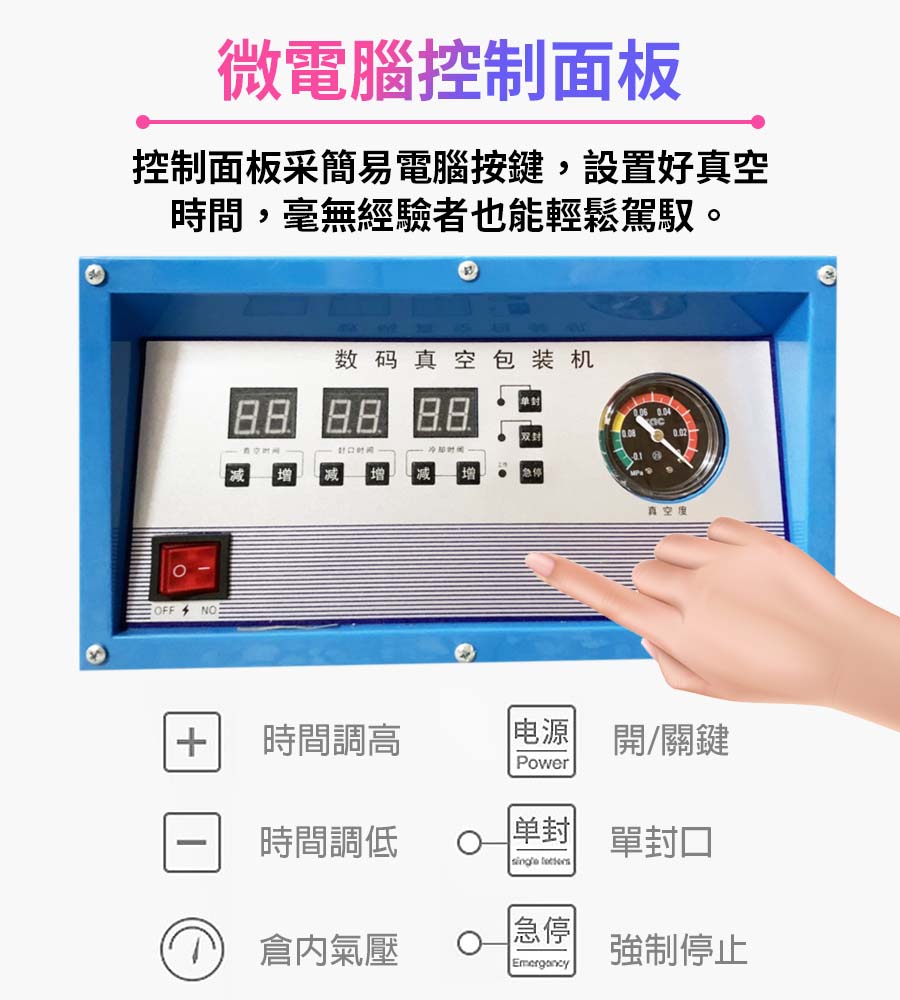 ❗❗ 抽真空效果如果不佳,請針對面板上的【真空時間】與【封口時間】做微調即可。