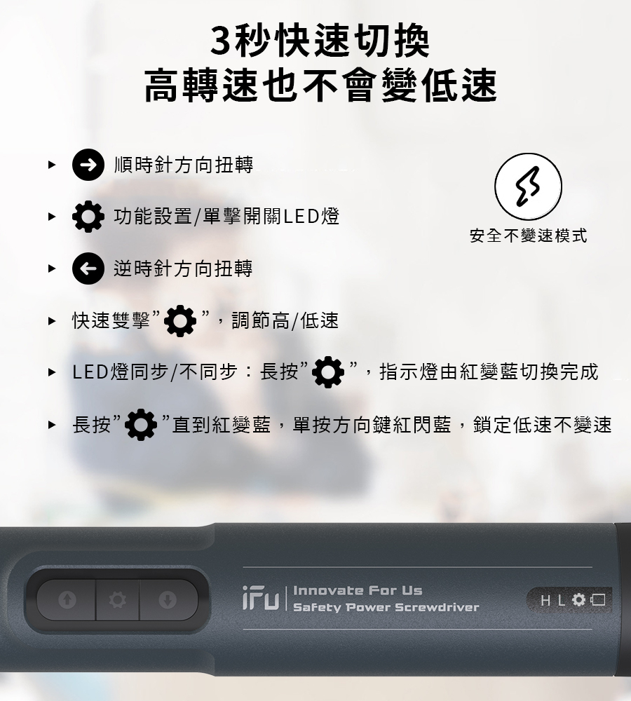 一手掌握3個按扭6種功能組合,速度調節一目了然