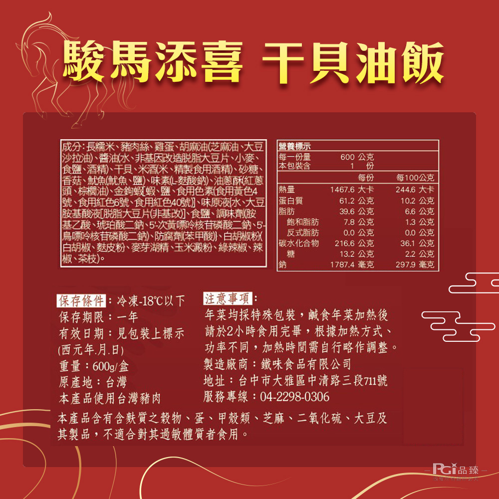 1.商品品名:【冊子】駿馬添喜干貝油飯(600g)