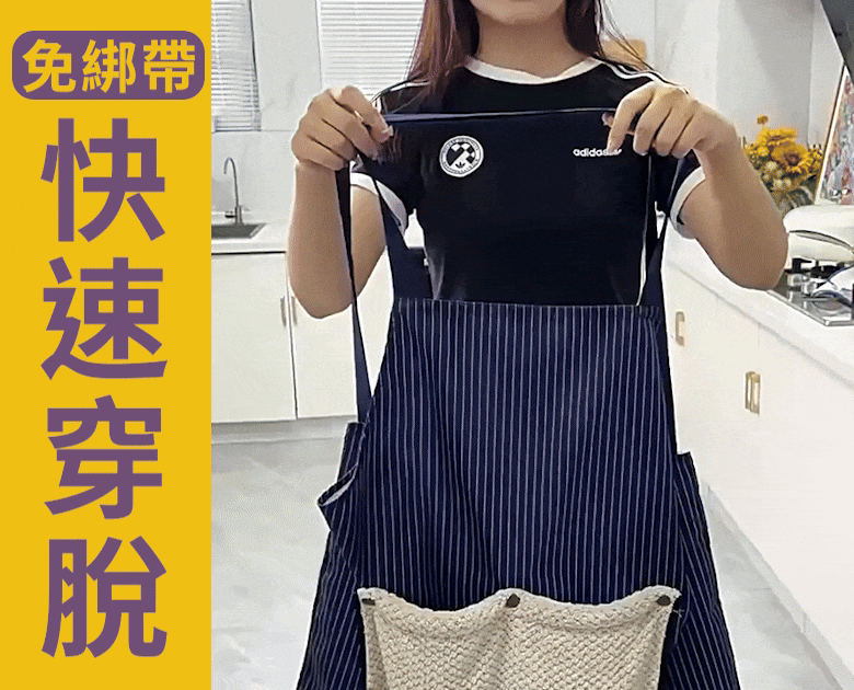 【商品名稱:日系免綁帶可替換擦手雙口袋圍裙】【規格】品牌 : Reddot紅點生活選項 : 雙層口袋-黑條紋/雙層口袋-藏青條紋/雙層口袋-咖啡條紋商品尺寸 : 171x68cm產地 : 中國材質 : 三合一防水面料