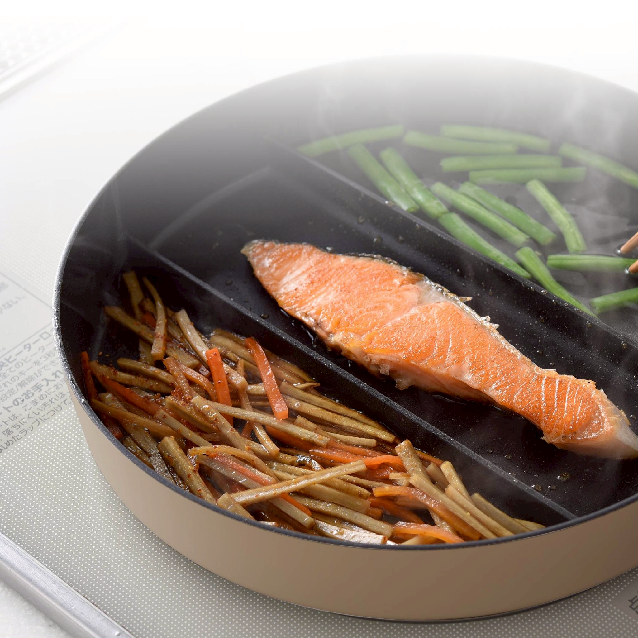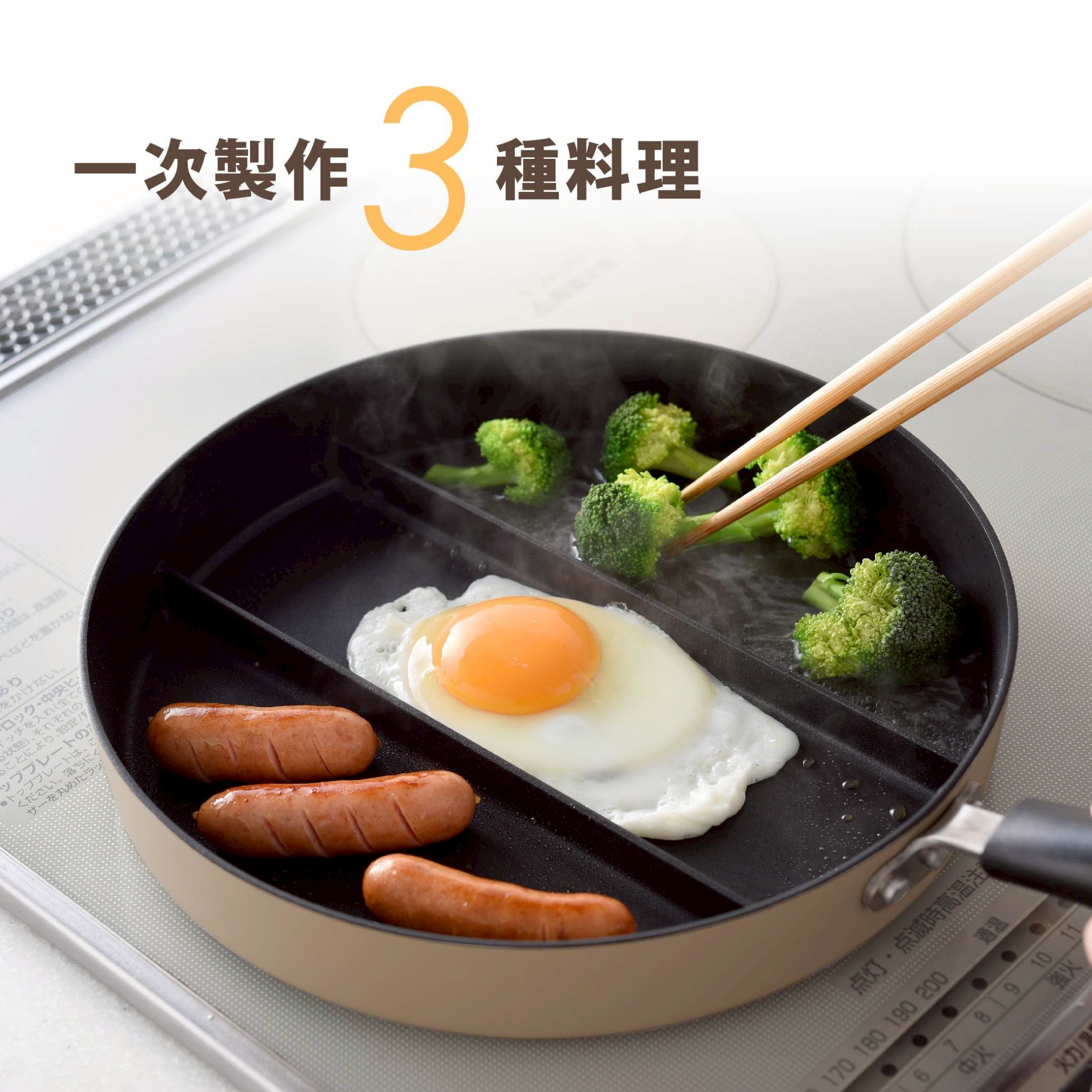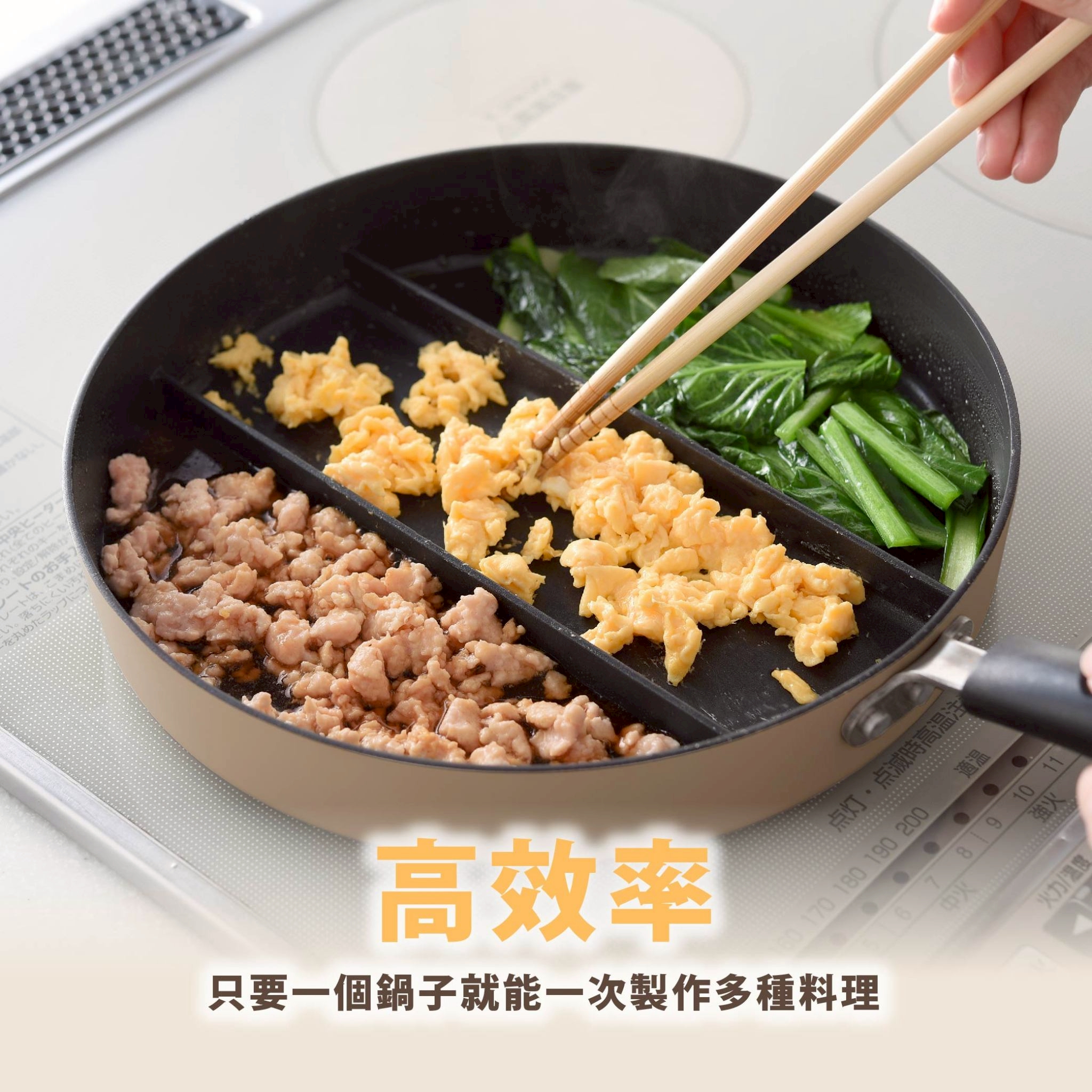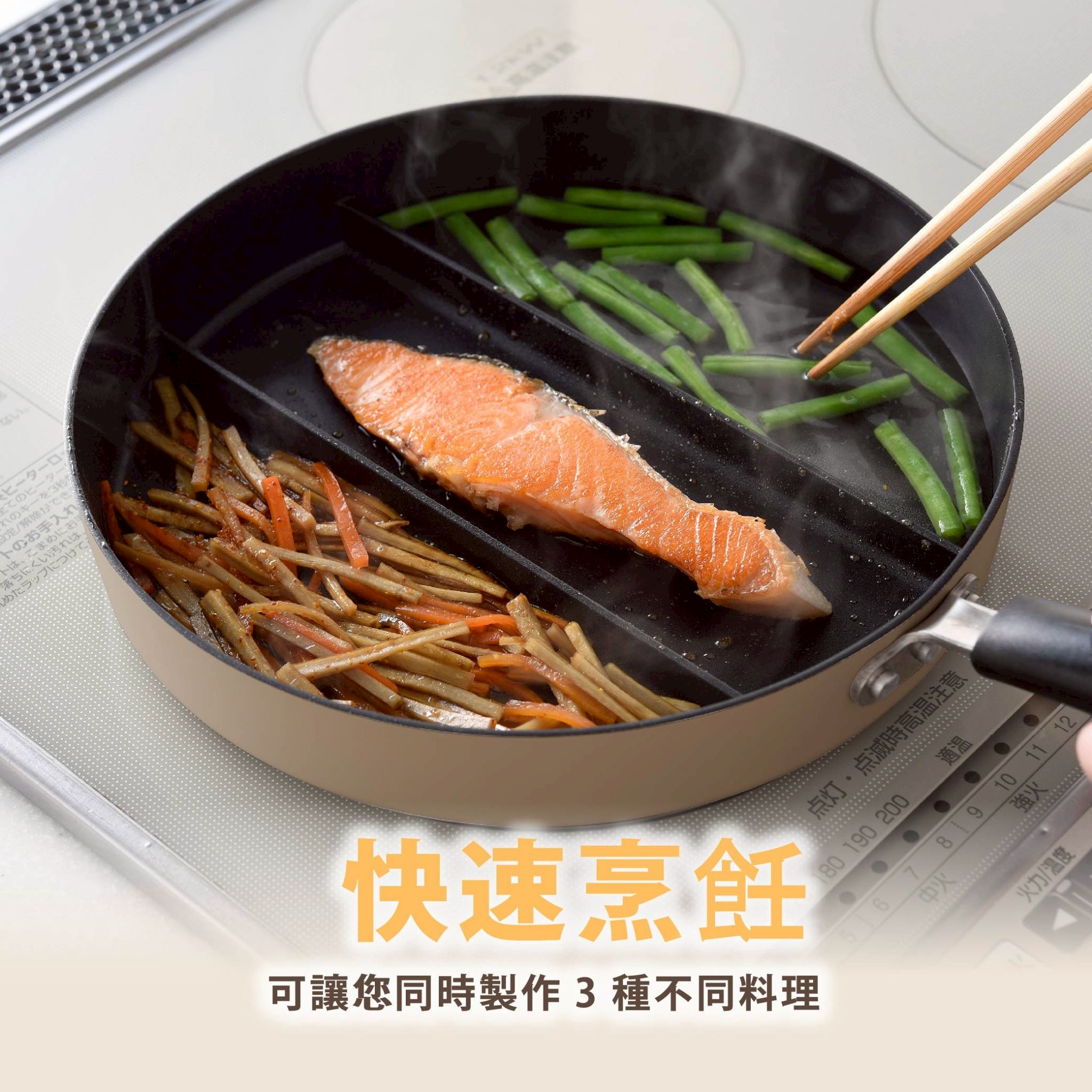 日本Arnest 三格不沾料理煎鍋24cm(奶茶色/不挑爐具)