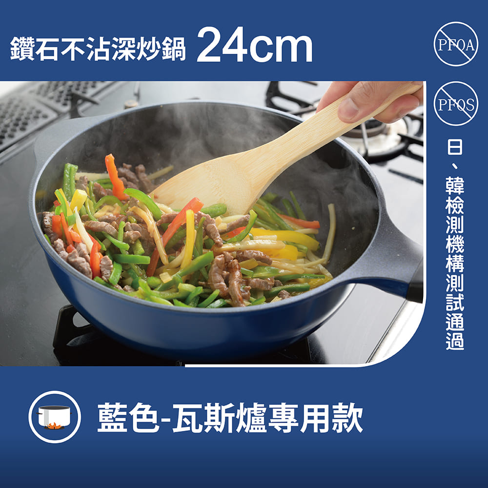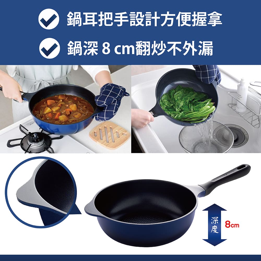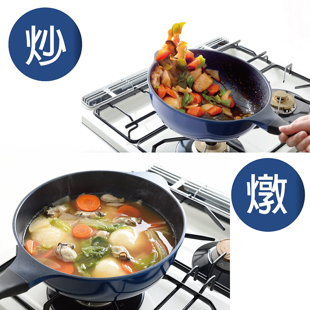 鑽石極輕不沾深炒鍋24cm海軍藍