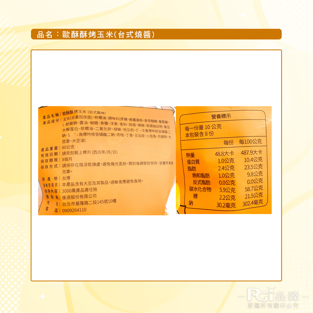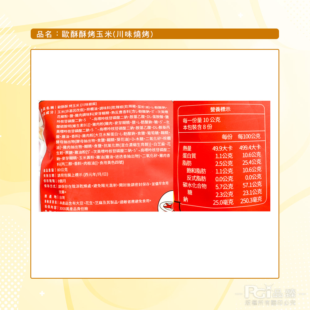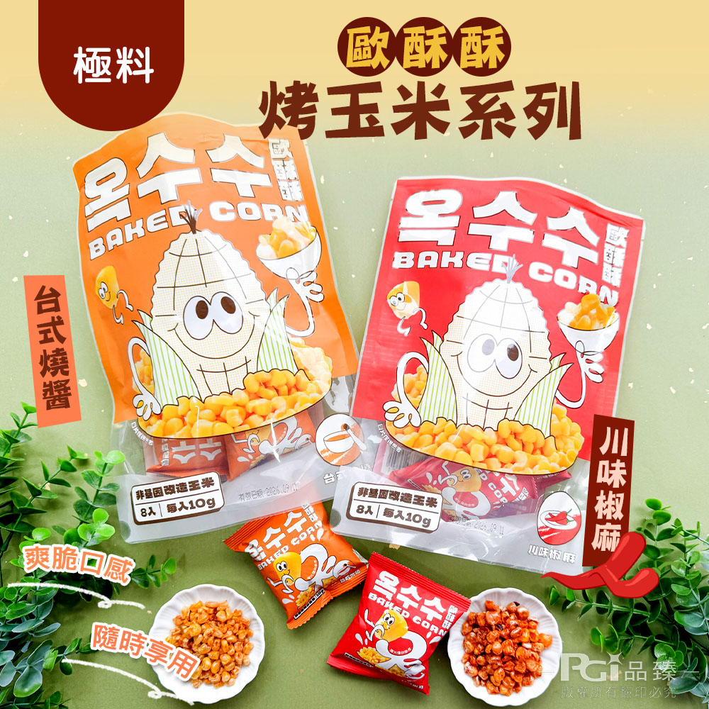 1.商品品名:【極料】歐酥酥烤玉米(台式燒醬/川味椒麻)(80g)