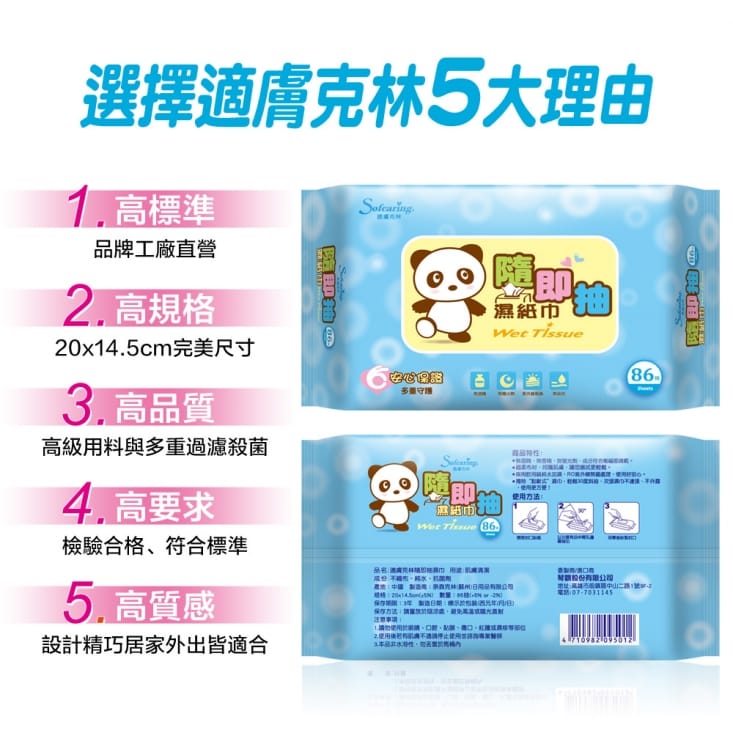 【商品名稱:適膚克林隨即抽濕紙巾】