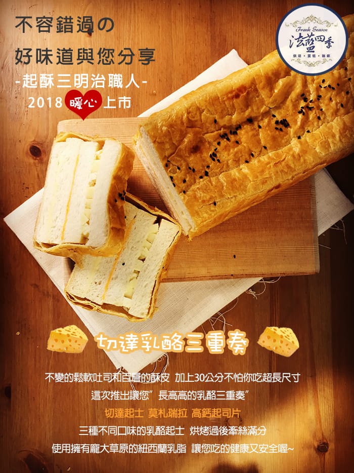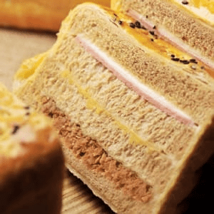 1.招牌起酥火腿肉鬆三明治:雞蛋、麵粉、奶油、火腿、紐西蘭起士、肉鬆、糖、鹽、牛奶土司
