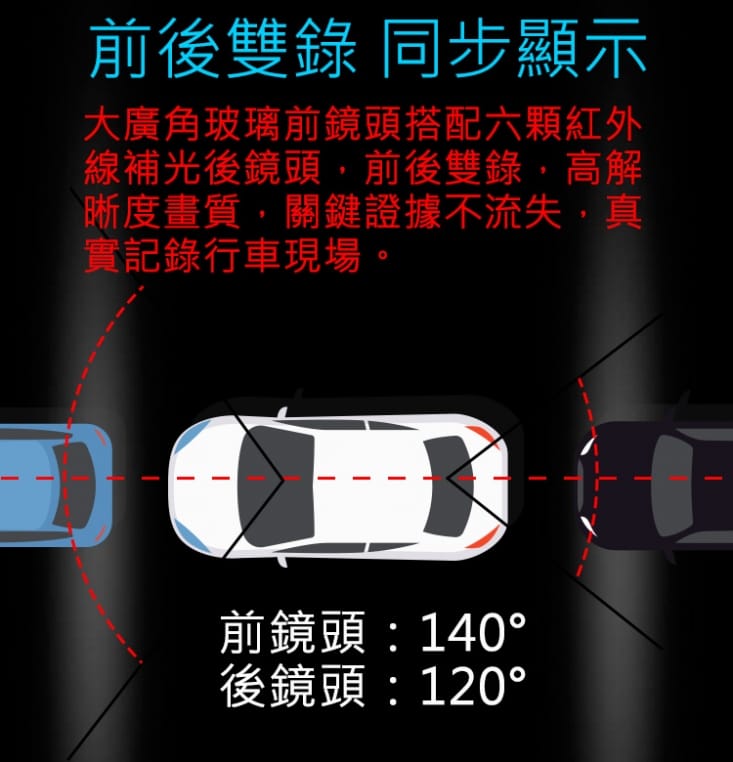 超薄紅外線夜視Full HD高畫質行車紀錄器,0.7公分厚度業界最薄,搭配紅外線8燈夜視鏡頭,再黑的夜依然清晰可見!同時隨貨搭配8米後鏡頭傳輸線,不管是轎車、休旅車、貨車都不怕後鏡頭線材長度不足!此外創新的電子時鐘功能,讓您時時刻刻映入眼簾!
