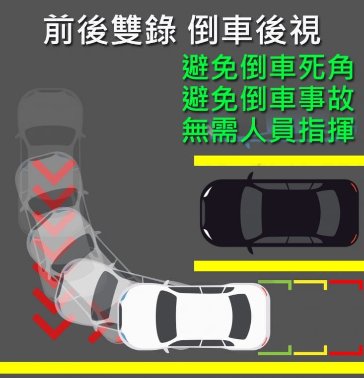 內容物:行車紀錄器x1,車充線x1, 防水後視鏡鏡頭x1, 後視鏡固定扣環x2, 說明書x1