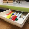 置於桌下收納方便,但不適合放太高、太厚的物品,筆、擦、尺、剪刀等較適宜。
