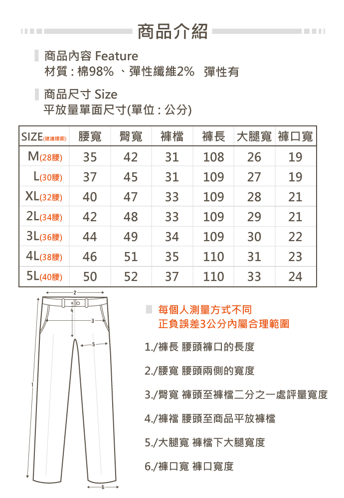 美式彈力耐磨口袋工作褲顏色:黑色、卡其、灰色尺碼:M(28腰)、 L(30腰)、 XL(32腰)、2L(34腰)、3L(36腰)、4L(38腰)、5L(40腰)規格:M/L/XL/2L/3L/4L/5L產地:中國材質:98% 棉 2%彈性纖維內容物與數量:褲子1版型偏大本島全配,僅外島不配送