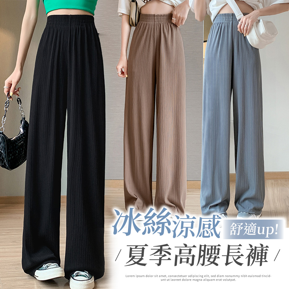 冰絲涼感夏季高腰女長褲