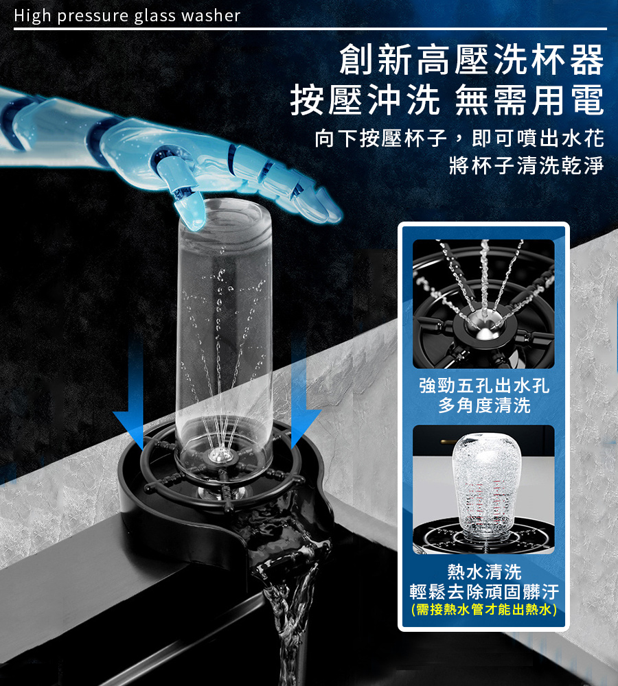 √創新高壓洗杯器 按壓沖洗 無需用電