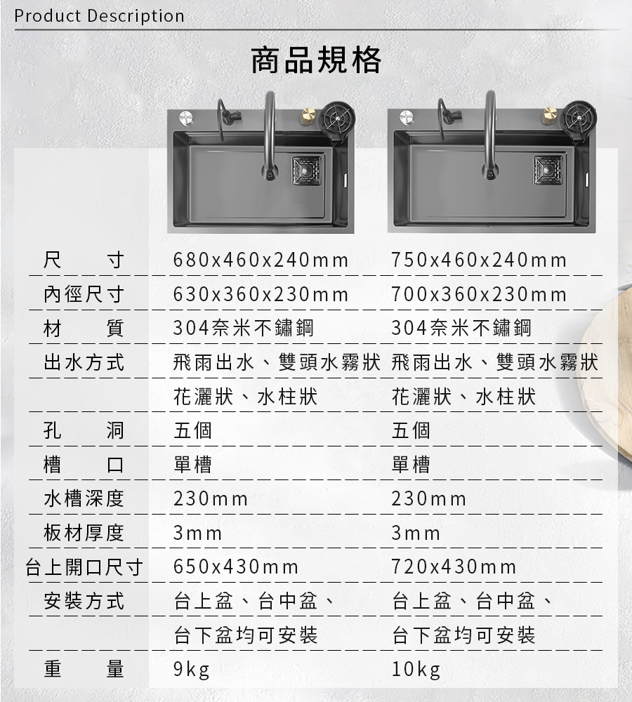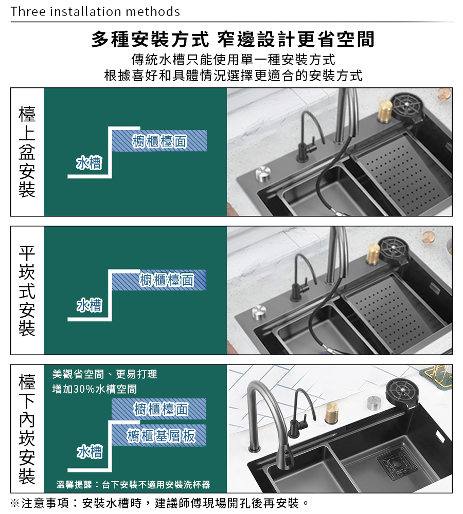 ※注意事項:安裝水槽時,建議師傅現場開孔後再安裝。