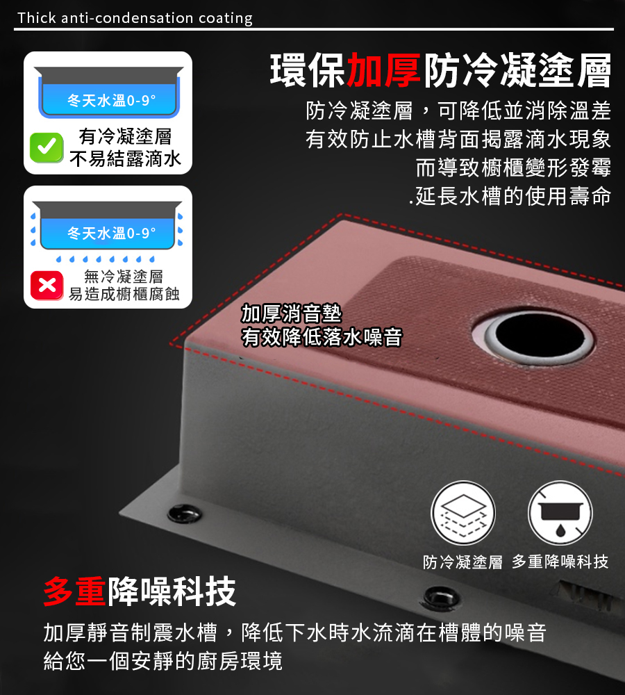 防止水槽背面產生水珠,導致櫥櫃系統受潮發霉而變形