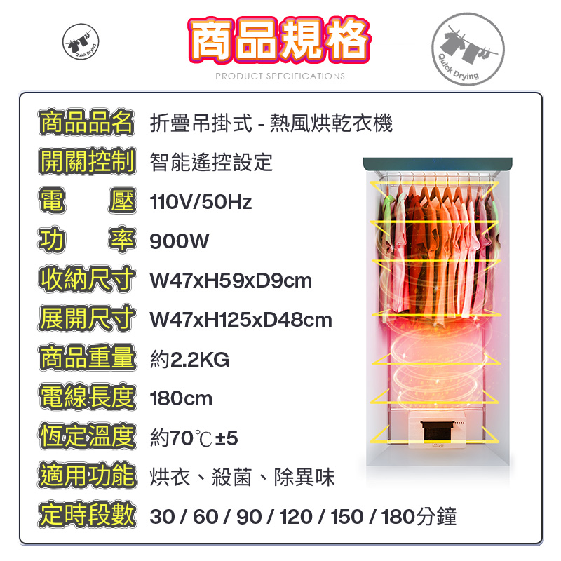 ◆.人性化的智能控制,定時烘乾最高可達180分鐘
