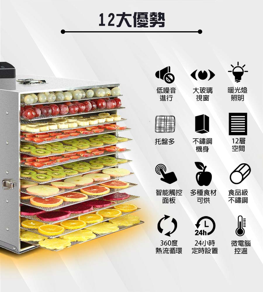 、12層大容量,平行熱風氣流,層層高溫烘乾