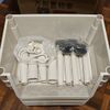 3.4層開口-籃子 x 4、連接桿 x 24、掛勾 x 2、塞蓋 x 4、錐形桿 x 4、底塞 x 4、萬向輪 x 2、煞車萬向輪 x 2