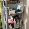1.3層開口-籃子 x 3、連接桿 x 16、掛勾 x 2、塞蓋 x 4、錐形桿 x 4、底塞 x 4、萬向輪 x 2、煞車萬向輪 x 2
