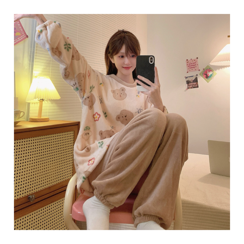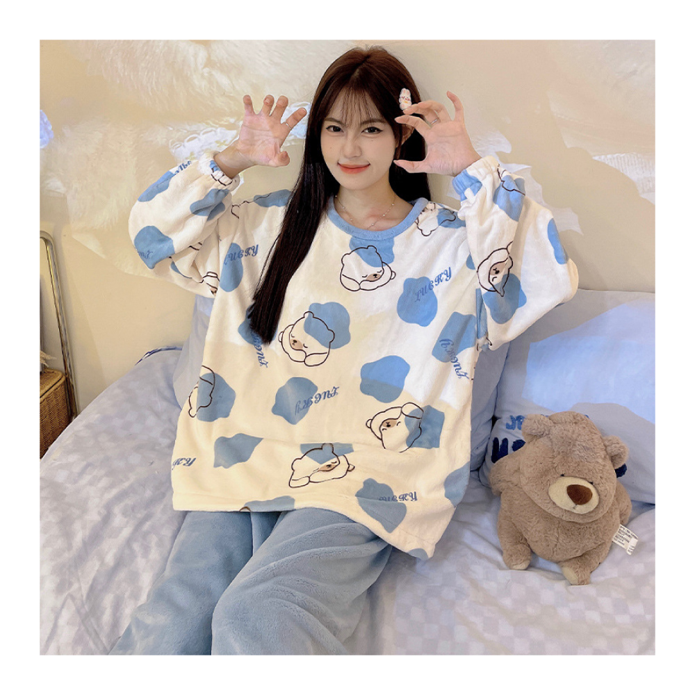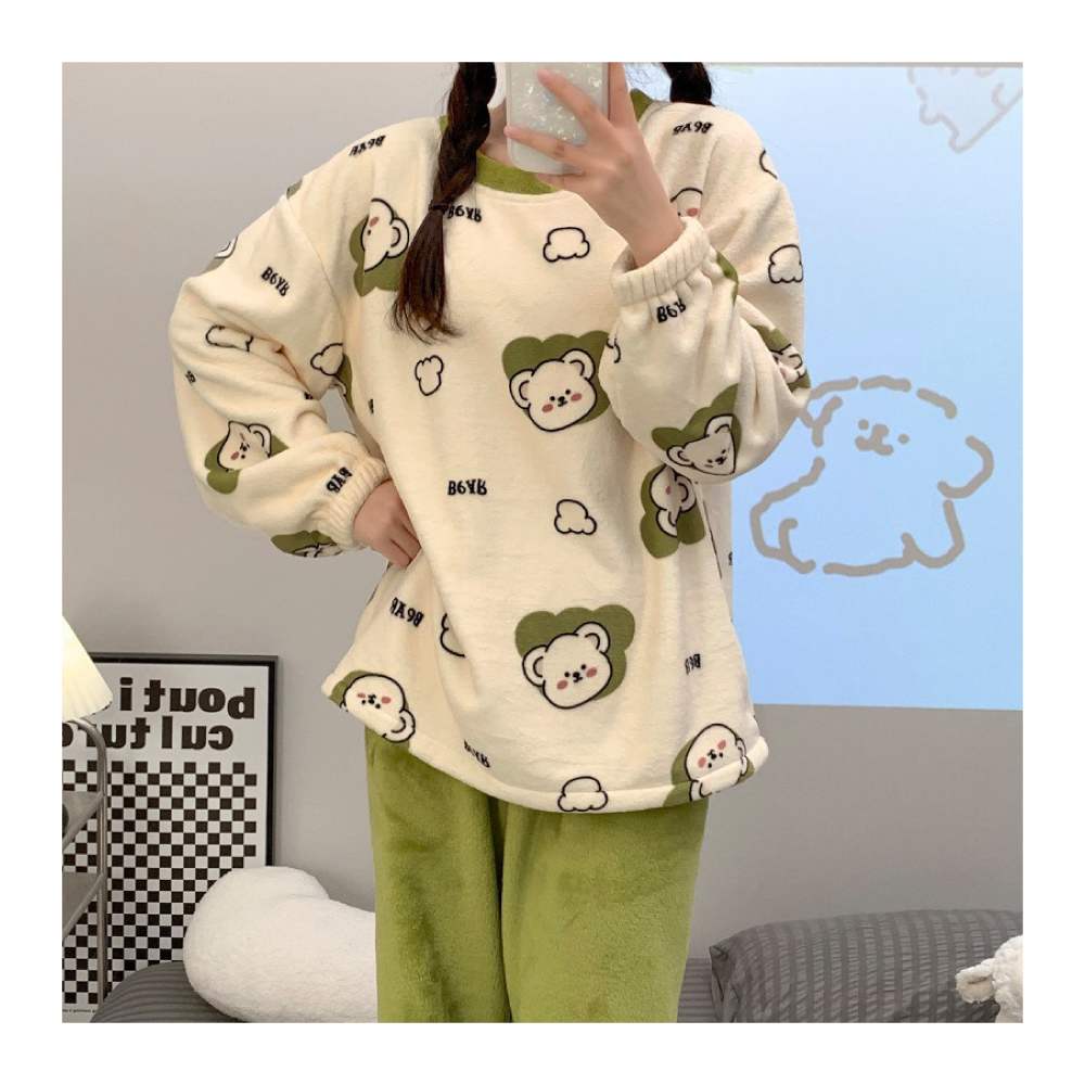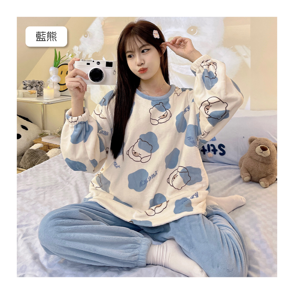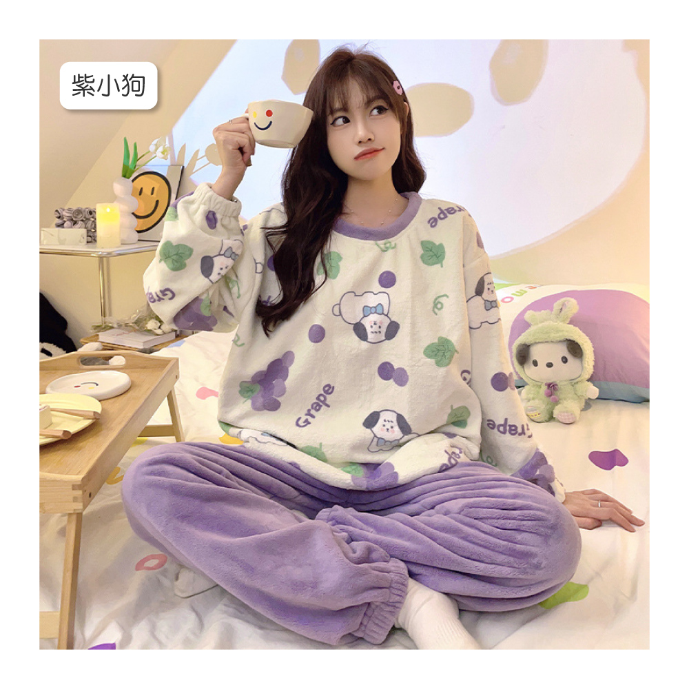 【商品名稱:親親動物系列珊瑚絨睡衣】【規格】選項 :桃子、紫小狗、綠熊、藍熊、米熊、咖啡熊規格 : 均碼產地 : 中國材質 : 100%聚酯纖維(滌綸)內容物與數量 : 上衣X1+褲子X1版型 : 正常