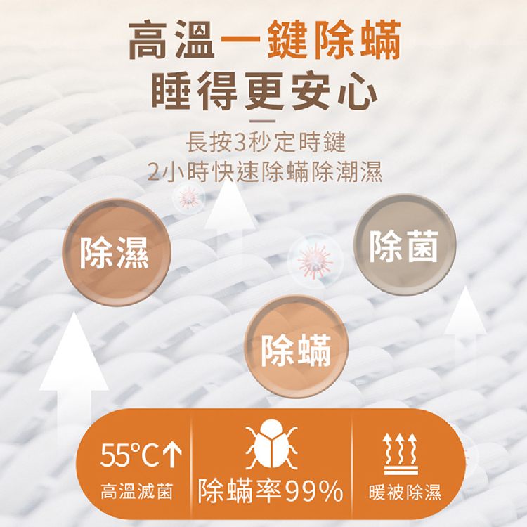 .一鍵2小時,快速除螨除潮溼