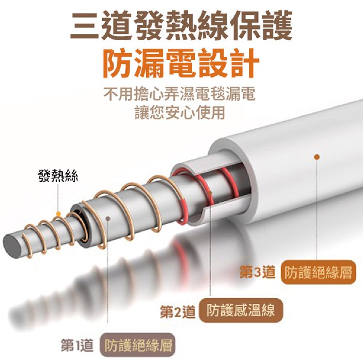 .發熱線3重保護,不漏電的安全設計